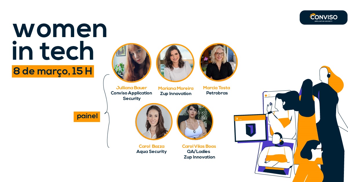 Para compor o painel, a Conviso convidou mulheres que são protagonistas no setor de Tecnologia no Brasil. Participam Márcia Tosta, que atua há mais de 30 anos com TI, há 15 com Segurança da Informação e atualmente lidera a Gerência Executiva de Segurança da Informação da Petrobras; Carolina Bozza, head de operação da Aqua Security para América Latina que soma 15 anos de carreira em cibersegurança; e também Carolina Vilas Boas, que é Cientista da Computac¸a~o com mais de 15 anos de experie^ncia na a´rea de TI e atua como Community Sponsorship Manager no QA Ladies e no Jornada Colaborativa. É Developer Advocate na Zup Innovation.